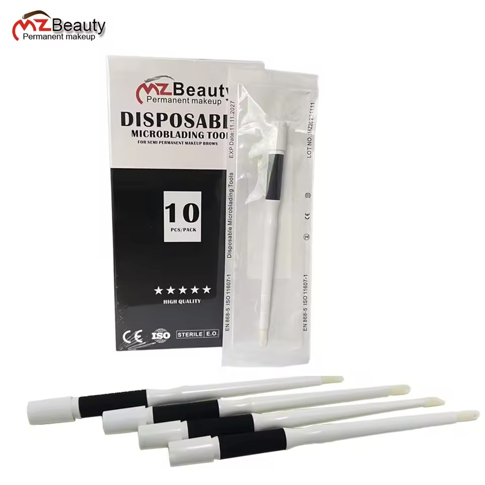 1.permanent makeup white disposable microblading pens hand tools with 12/14/16/18/21 pins needles embroidery blades;